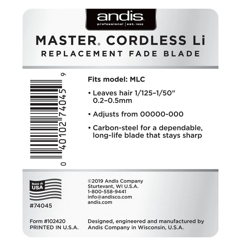 Andis Master Cordless Li Replacement Fade Blade – Carbon Steel #74045